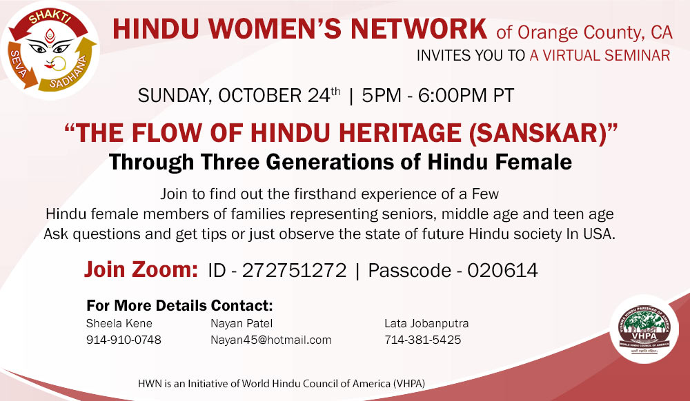 For more information or to start a chapter of Hindu Women’s Network in your area, please contact