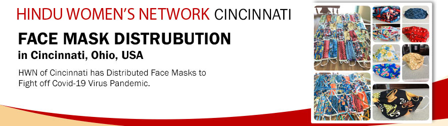 In April 2020, Neelam Jaiswal took the initiative of forming a team of members of Hindu Women’s Network, part of the Cincinnati chapter, for making and distributing face masks to fight off Covid-19 virus pandemic. She and Avisha Gulrajani, Manjul Gupta and Rita Singla made more than 500 face masks and distributed it to a TriHealth hospital, doctors’ offices and neighbors.
