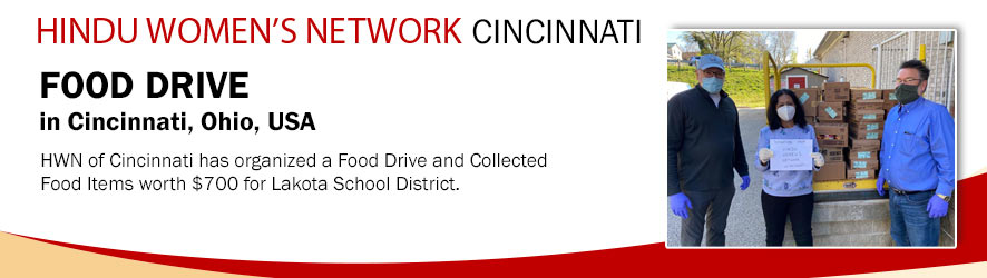 During this pandemic time Kalpana Parikh of Hindu Women’s Network, Cincinnati Chapter and her husband Ashwin Parikh, President of Jain Temple, organized a successful food drive and collected food items worth $700 for Lakota School District which is providing free groceries to the needy families as the schools were closed due to Covid-19 crisis.